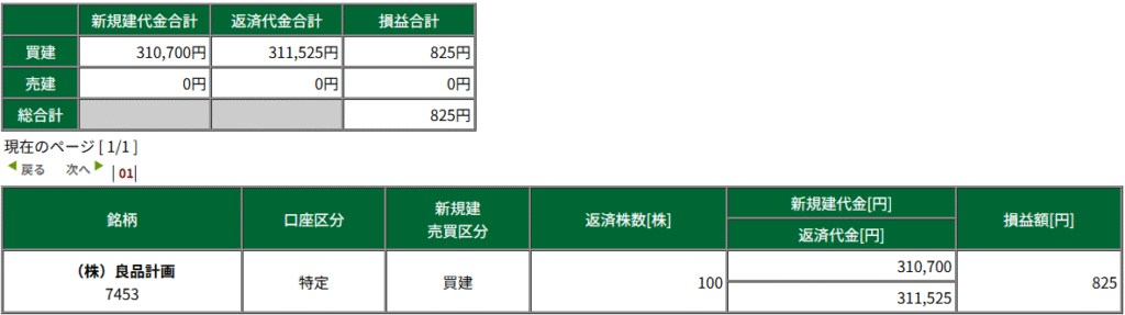 良品計画<6204>:一日信用返済忘れの100株が9時の寄り成行で強制決済された。